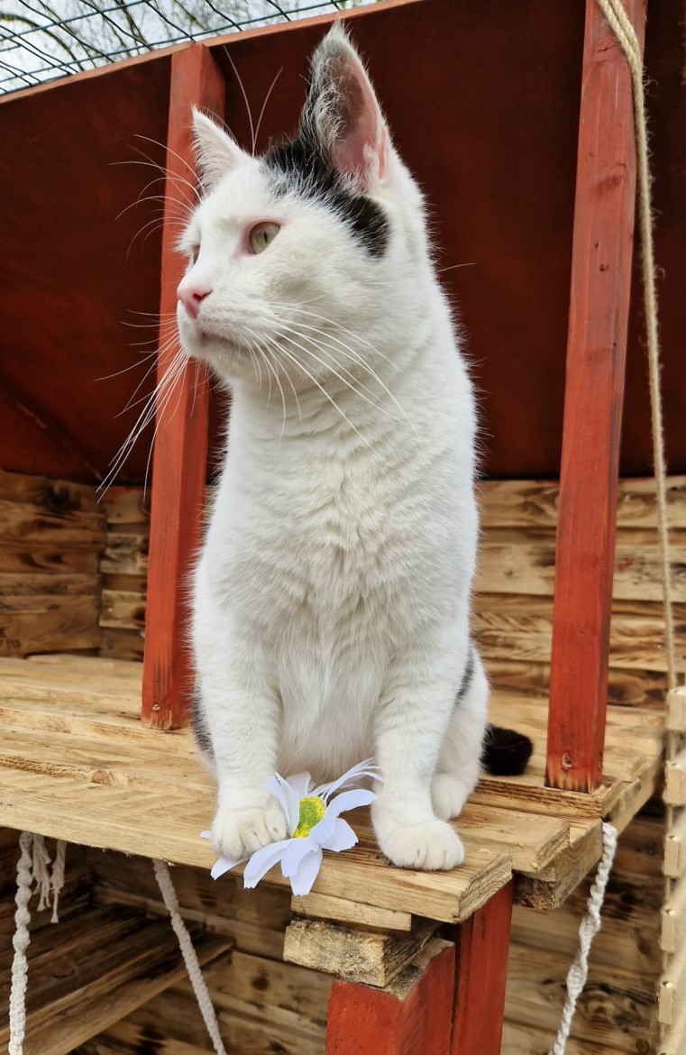 Draudziņš pie mums nonāca no Ķieģeļu ielas mikrorajona, Jēkabpilī, visai bēdīgā stāvoklī. Bet, būdams optimists, atveseļojās un ļoti novērtē savu otro iespēju laimīgai kaķa dzīvei.