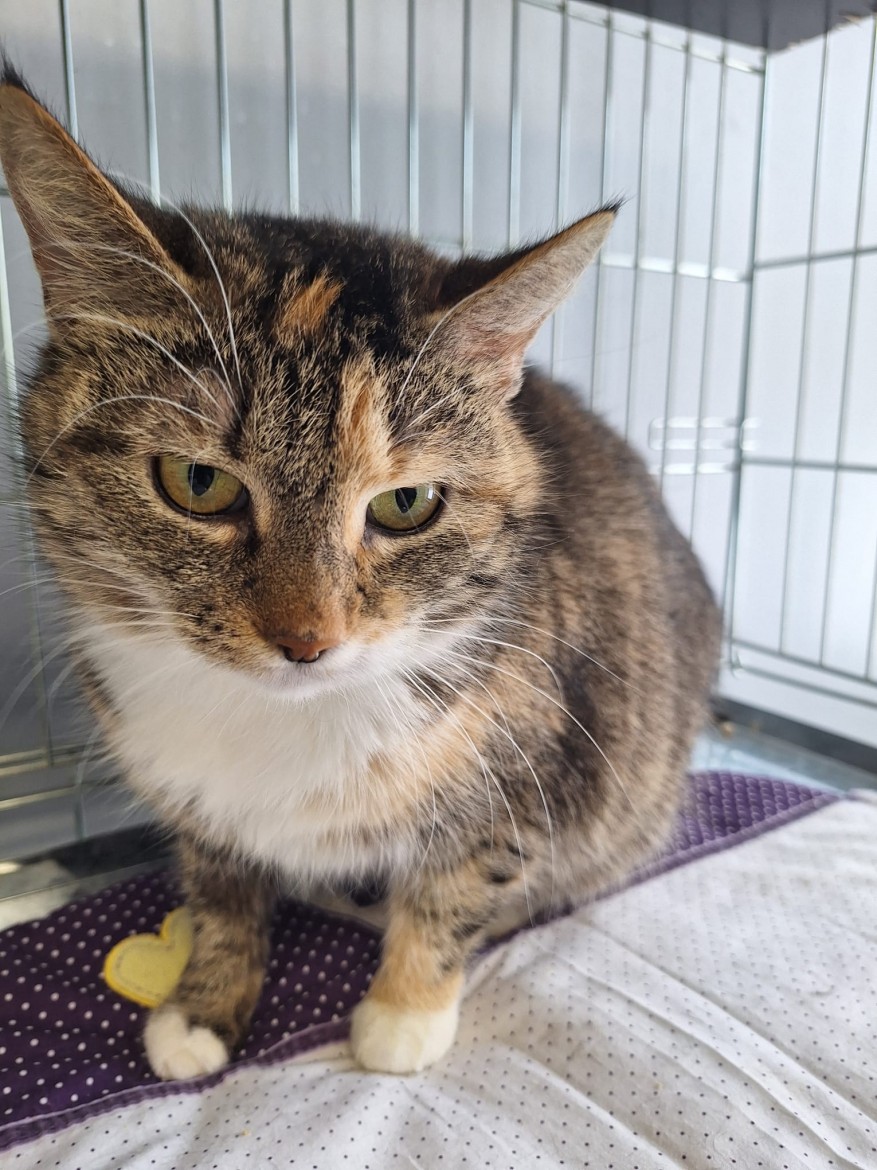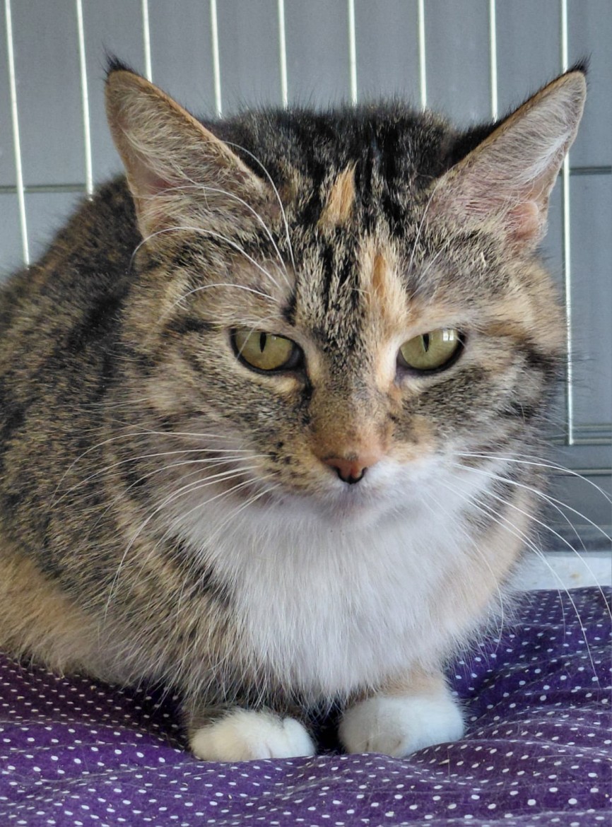 Pieaugusi, klusa un ļoti smalka dvēselīte. Matilde kopā ar vairākiem citiem minčiem nonāca mūsu aprūpē no mājām, kur murrātāju bija kļuvis pārāk daudz un saimniece vairs nespēja pienācīgi parūpēties par visiem astaiņiem.