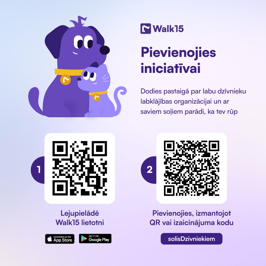 Aicinām pievienoties iniciatīvai "Soļi dzīvnieku patversmēm", kurā katram solim ir nozīme.